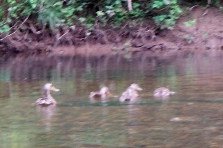 I saw a number of ducks, mallards, including a few with ducklings. This group allowed me to float past them without taking flight or swimming for the shore to take cover. They moved slightly closer to the bank but they were pretty intent on feeding and didn't pay much attention to me.