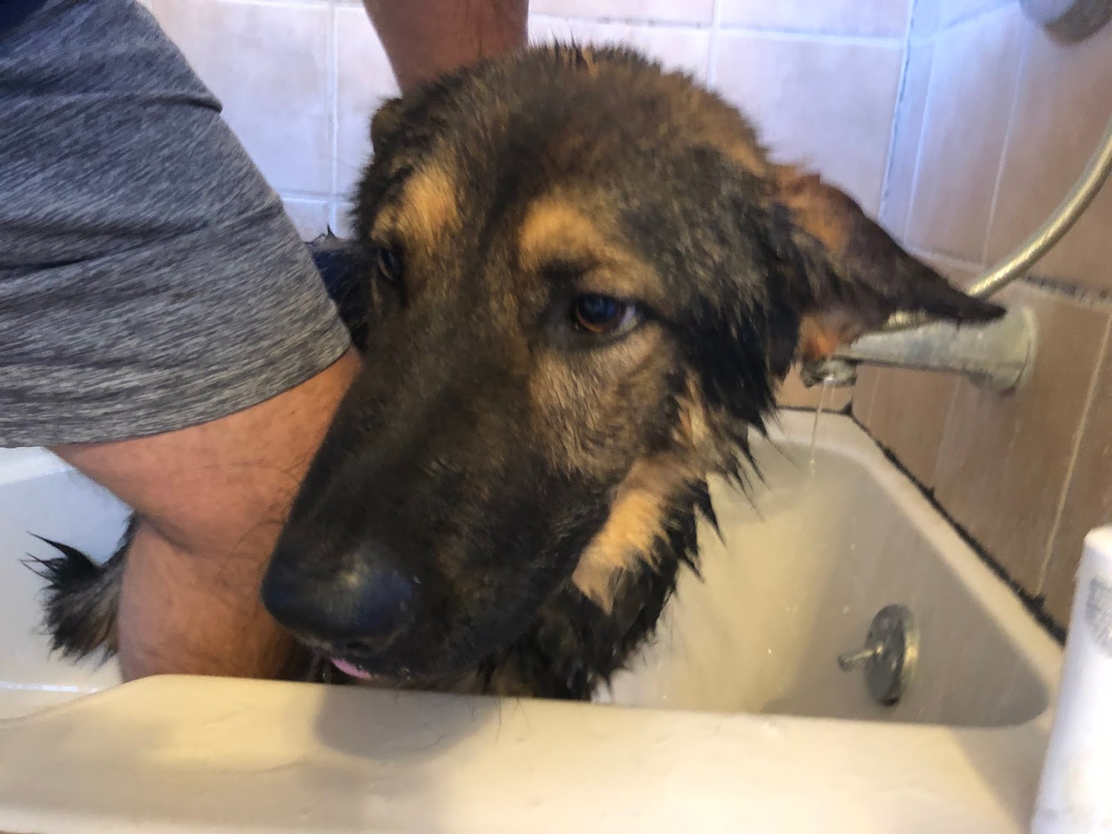 | The folks who brought him to me had given him a bath, so it wasn't his first, but he needed another. |