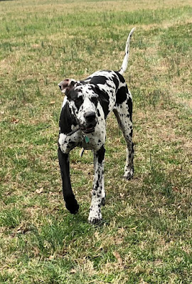 | Here's the full house, three shepherds, two Danes. |
