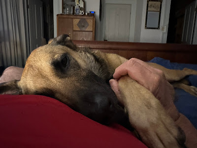 Bailey and I get out for a half hour walk early in the morning and then a much longer walk in the afternoon that includes a visit to the dog park. That afternoon walk may not happen today, however, because a storm from the Atlantic is blowing in here today with strong wind and a fair amount of rain. I skipped class this morning and have been cooking today instead. I made another batch of gazpacho, a salad, and a salmon quiche so far. Next up is some sort of sausage and cabbage dish with ingredients we bought at a local market this week.