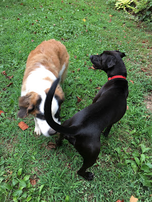 The adopters have a great piece of property that includes a loop of trail through some woods. |