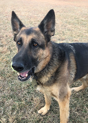Scarlett has been boarding with us since last Wednesday. She's a former foster and she gets along well with everyone. Griffin and Jackie were new to her but she got along fine with them, as she does with the rest of our pack.