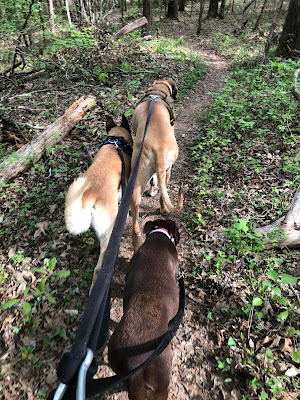 She facility to avoiding entanglements with the leash makes me believe she had been chained. She's low to the ground so the leash attached to her collar would often get under her legs, but she would lift her leg and get the leash out from under her on her own. I never had to stop and fix it like I sometimes do for Maya and Serena.