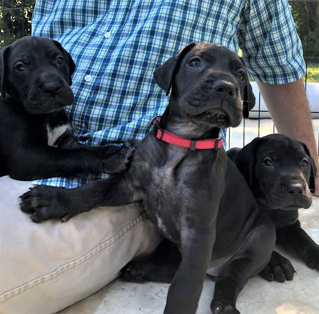 | In case there was any doubt, Great Danes can be lap dogs and this entire litter will be. We have been holding and handling them, a lot. |