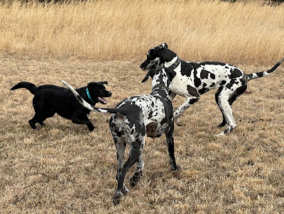 Madison ran with Hudson, rolled him a few times. Partly it was play, partly discipline.